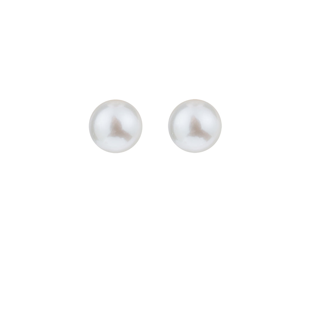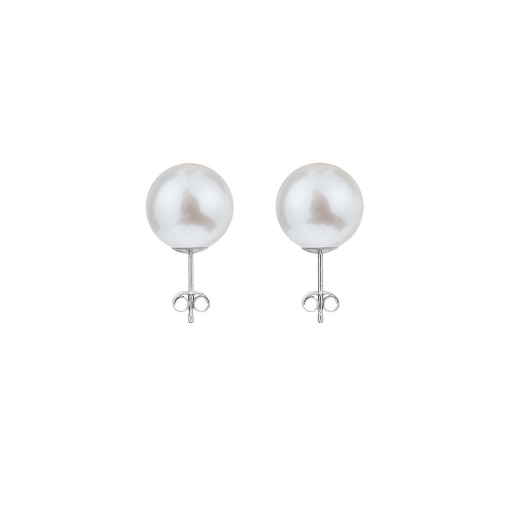 Classic round high luster freshwater pearl stud earrings with scrolls.
