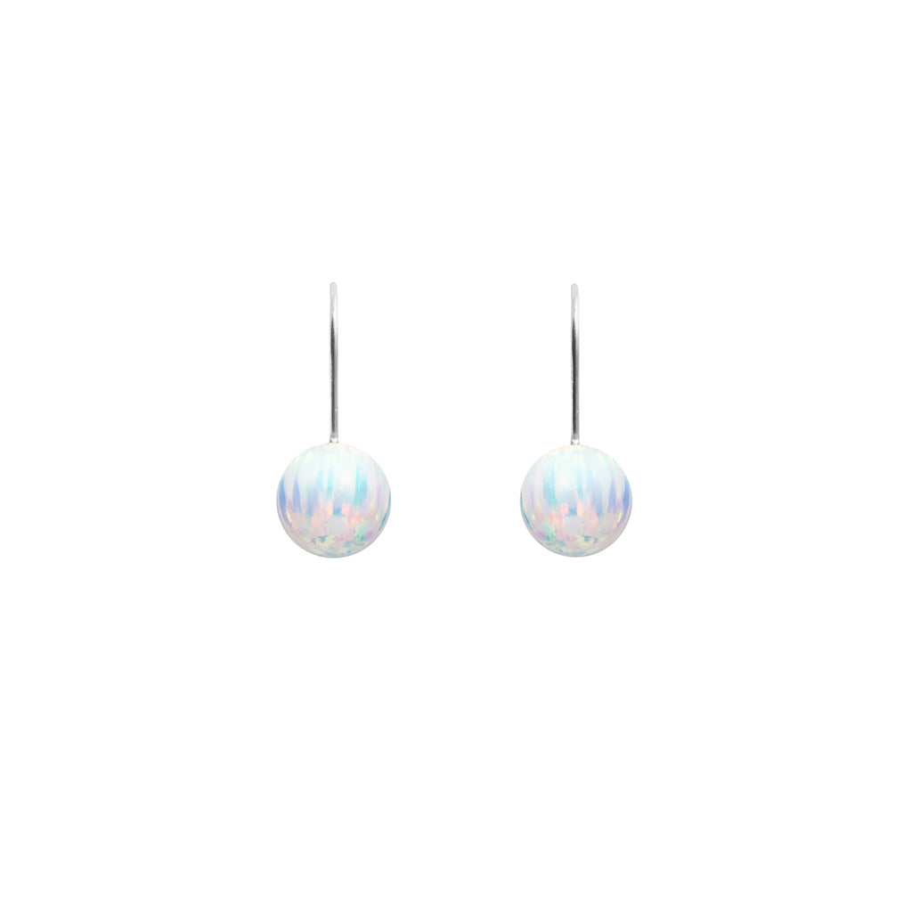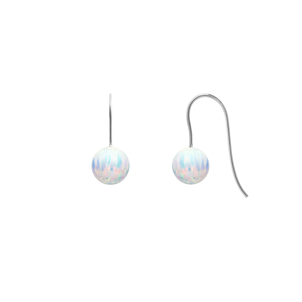 Iridescent lab-grown ice opal duet earrings. Gorgeous flashes of colour can be seen when the earrings rotate.