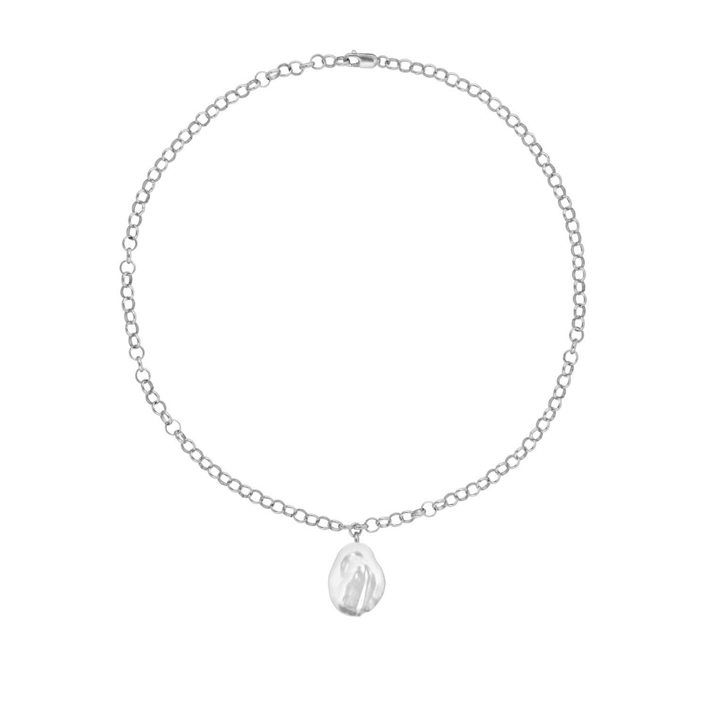 Chunky round chain necklace with large baroque freshwater pearl.