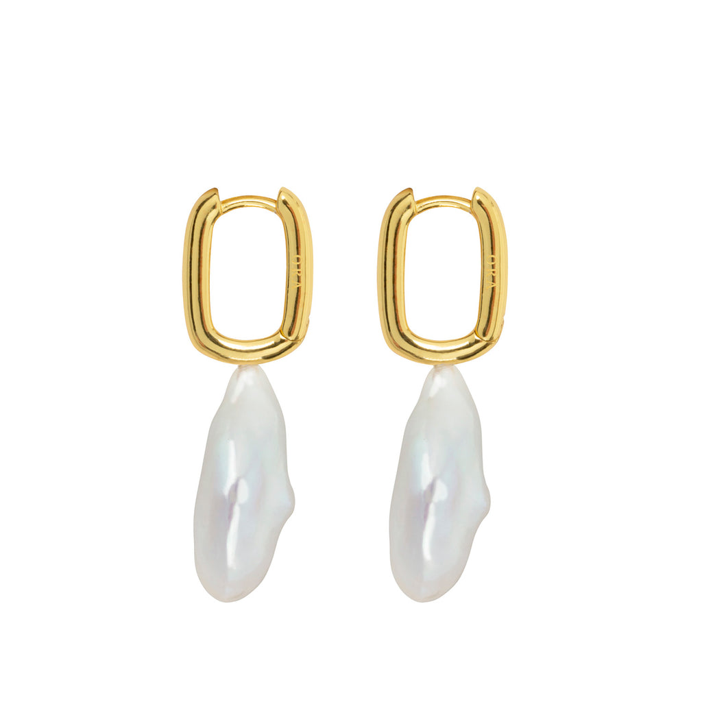 AETIS FLAT BAROQUE PEARL HOOP EARRINGS