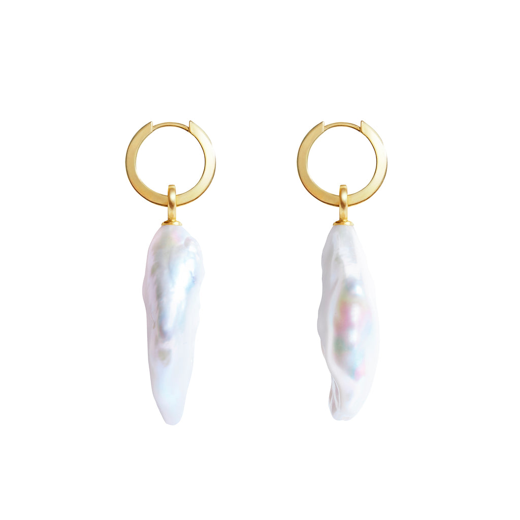 AURELIA FLAT BAROQUE PEARL HOOP EARRINGS