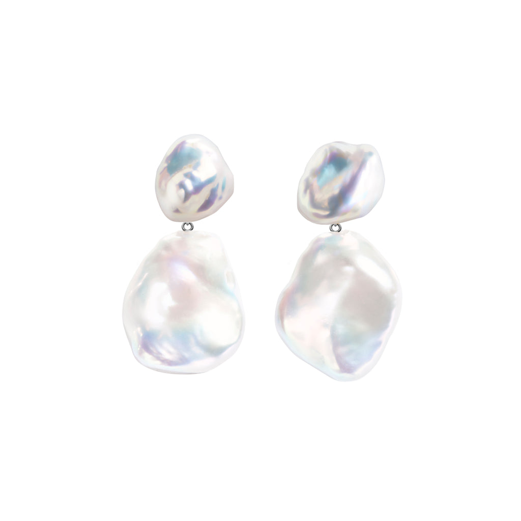 DUET KESHI & FLAT BAROQUE PEARL EARRINGS