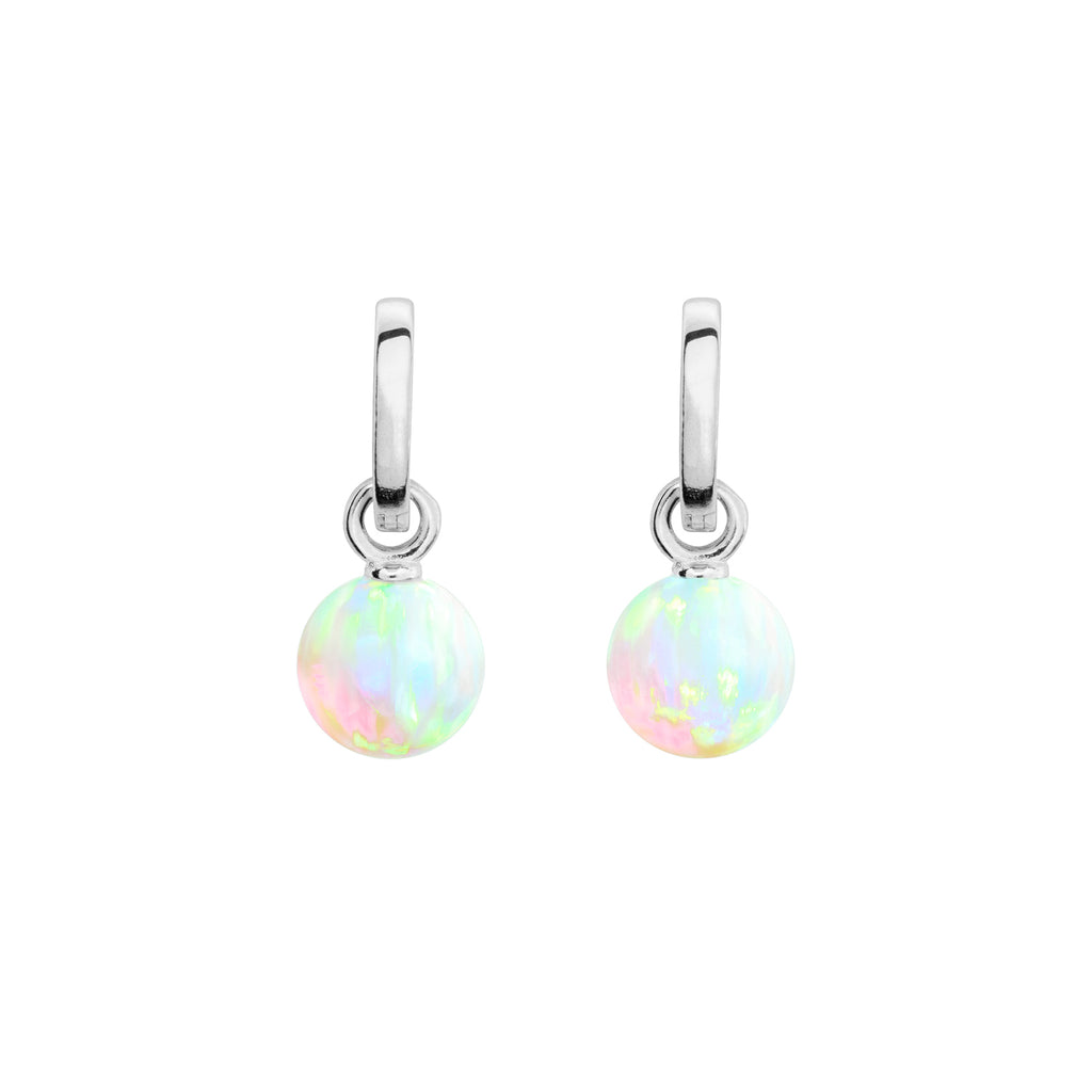 Iridescent lab grown sea opal hoop earrings. The hoops can be worn alone.