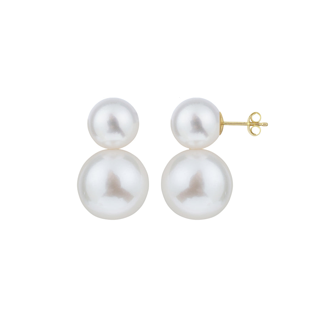 DUETA freshwater pearl stud earrings on solid 9ct yellow gold posts.